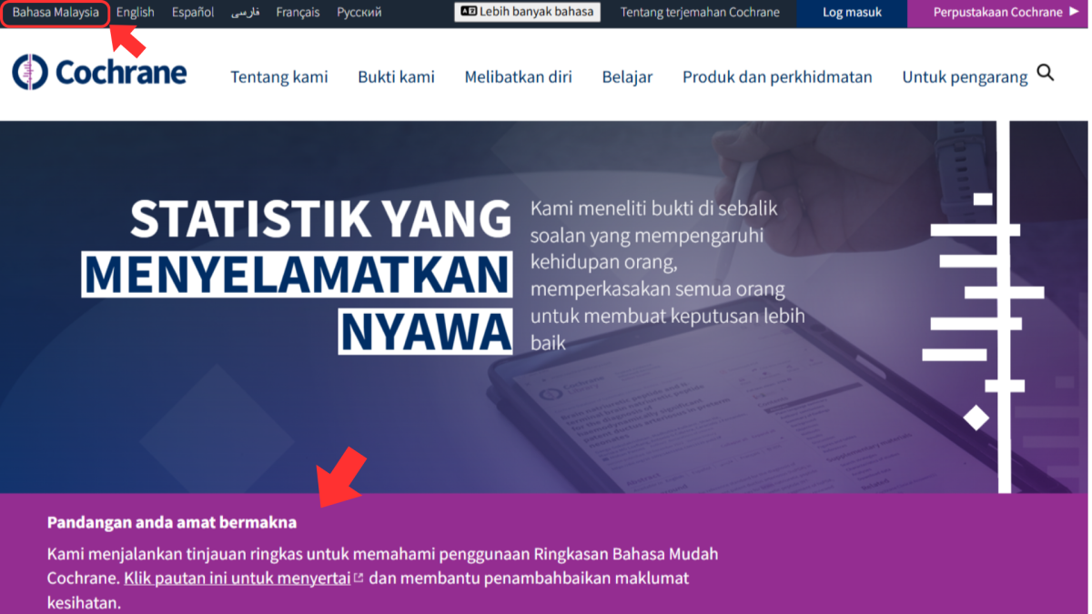 Anda juga boleh menyertai melalui laman web Cochrane dalam Bahasa Malaysia.